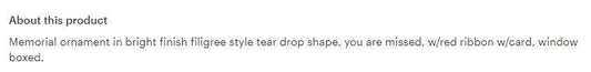 You Are Missed Teardrop Ornament