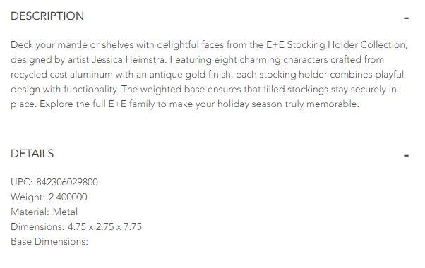 This exclusive and whimsical "Eric" + "Eloise" collection is hand cast and has an oil rubbed bronze finish. These sturdy stocking holders make the perfect edition to your seasonal decor!